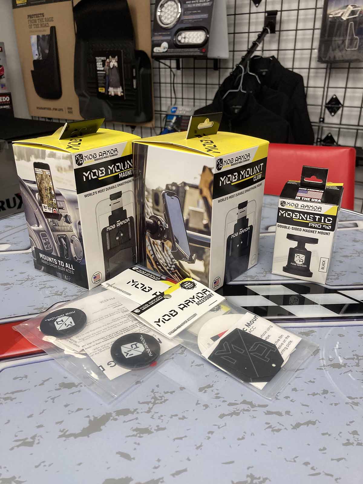 Mob Armor mounts are unique double magnet mounts. They use rare earth magnets with 90 lbs. of pull force to create instant, secure docking for your smartphone or other devices in your vehicle, shop, or anywhere you go. Mob Armor mounts can be mounted to any ferrous metal surface, and feature 360 degrees of rotation and 90 degrees of tilt adjustment for optimal viewing of your device. Each Mob Armor mount includes a single steel Mob disc with 3m adhesive.